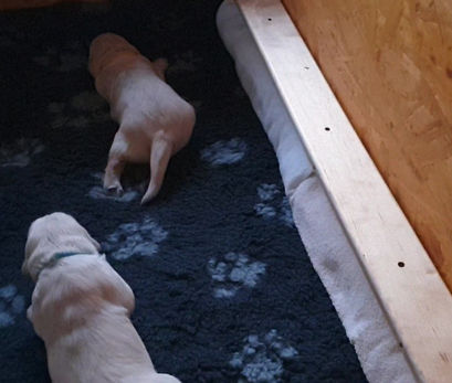 Sie sind sehr neugierig, lebhaft und unternehmungslustig, somit haben wir den Welpen Auslauf nochmals umgebaut, um mehr platz zu schaffen. Sobald die Tür des Welpen Auslaufes geöffnet ist, werden auch die restlichen Räume von den drei Rackern erkundet.