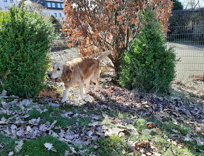 Heute waren wir bei Sonnigen Wetter im Garten und Caci hat uns bei der Gartenarbeit "geholfen". Es geht ihr weiterhin gut und selbst eine kleine Dummy Suche hat ihr noch viel Spaß gemacht.